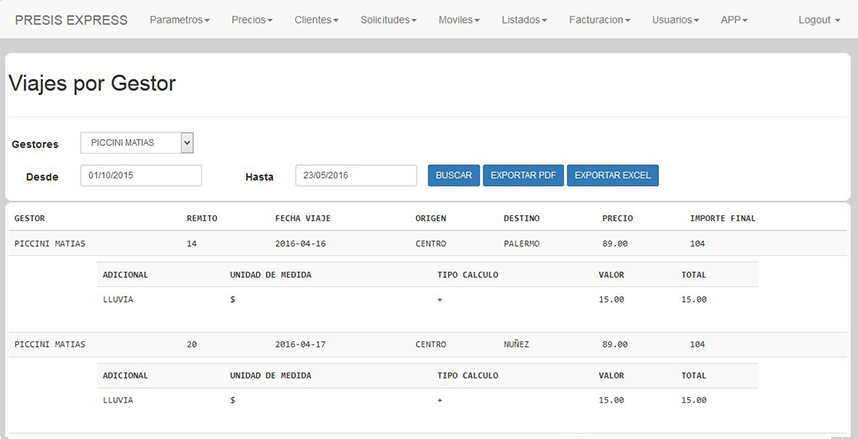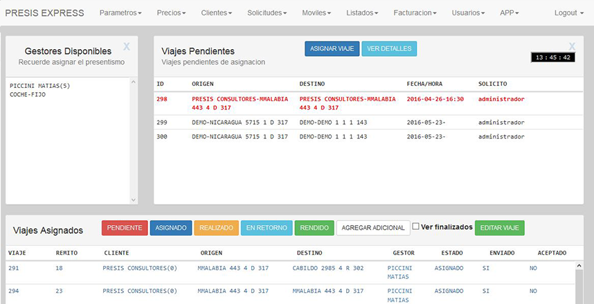 El sistema Presis Express está dirigido a empresas de cadetería y motomensajería. El sistema facilita la dinámica de trabajo mediante el seguimiento y control del mismo. También incluye complementación con celular, seguimiento satélital y lectura de códigos de barras.